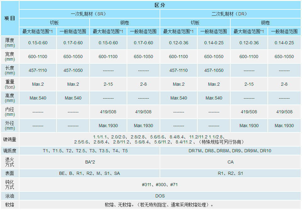 *2:BA材(T1、T1.5、T2、T2.5、T3):推薦使用具有與BA材相同特性且綜合性能更優(yōu)的超低碳連續(xù)退火鋼(IF鋼)。