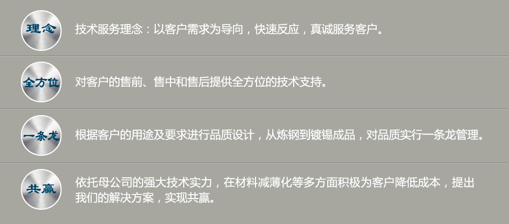 設(shè)備工藝 生產(chǎn)流程 生產(chǎn)設(shè)備 核心工藝 產(chǎn)品介紹 馬口鐵/鍍鉻鐵 應(yīng)用介紹 規(guī)格參數(shù) 可制造范圍 |